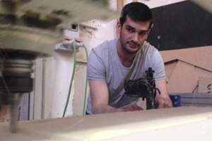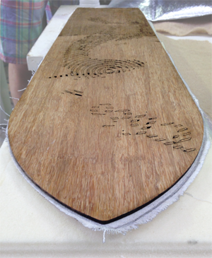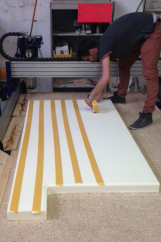 Luciano went over the details of machining foam on the shopbot to make our 3d mold and then working with burlap and a natural resin, and forming the whole thing with vaccuum bags.