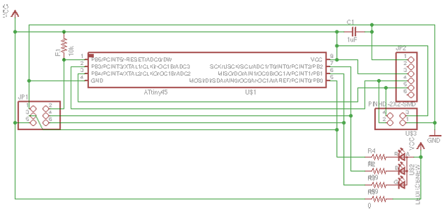 As I set to design the board I decide to add a small twist to the project: I'd like to see if I can manage to get nodes to interact with one another. I should not have to change the circuit too much but I would like that the node can transmit a range of information so I decide to change the LED on the board of 'Hello Bus' with a RGB LED.