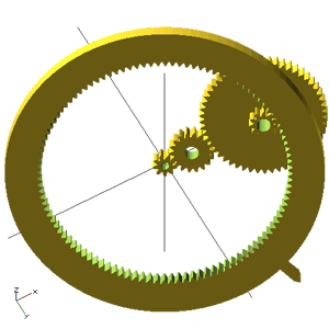 I do'nt know the first thing about gears, just that Neil mention that it was non-trivial, and that the shape of the teeth should be such that there is a permanent and continuous contact between the teeth of two adjacent gears. A quick check on Google seems to confirm that diagnostic. So right now might not be the best time to decide to become savvy about gear teeth design, so I go back to Google to find tools that can take me to a place I can start designing without having to worry about teeth shape. Doing some quick research, I find out that InkScape has a "gear module", InkScape would work for me because I prefer to laser cut my gears in a thick material rather than 3D print them, because I feel that I need a lot of practice before I can get something with a good enough precision out of the 3D printer.