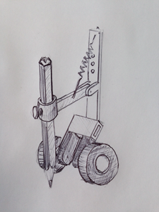 So Dood will be his name (sorry Neil I’m starting with the marketing; I know you said “bottom-up not top-down”, but I couldn’t help it). Well Dood is a 6-inch tall Segway doodler that can read Postscript or some other vector graphic language that we will learn in this class, and move about to achieve the drawing; and one of his first assignments could be to do my daughter’s home work so that I don’t have to be constantly on her back. OK this is not a very technical definition but my intention is that anyone can get the idea.