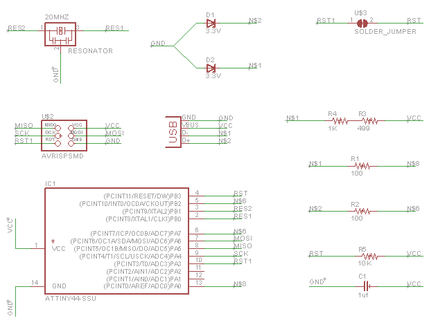 Next I wanted to design my own ISP. I started working with Eagle and reverse engineered the schematics of the board. These are my SCH and BRD files.