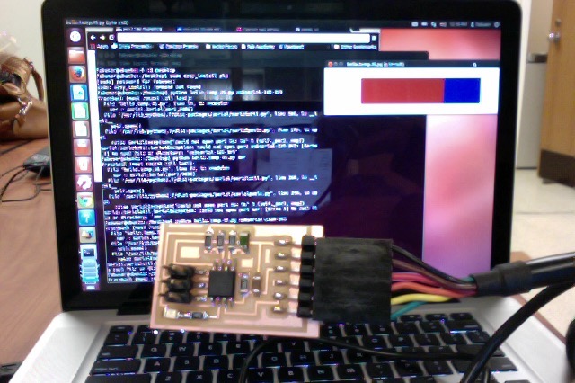 i will come back next week to change the c file to control the light; i want to see my board work!!! now! i looked on several pages to see how to install the python GUI, and after listing the devices, and finding the right device identification number, i used the command: