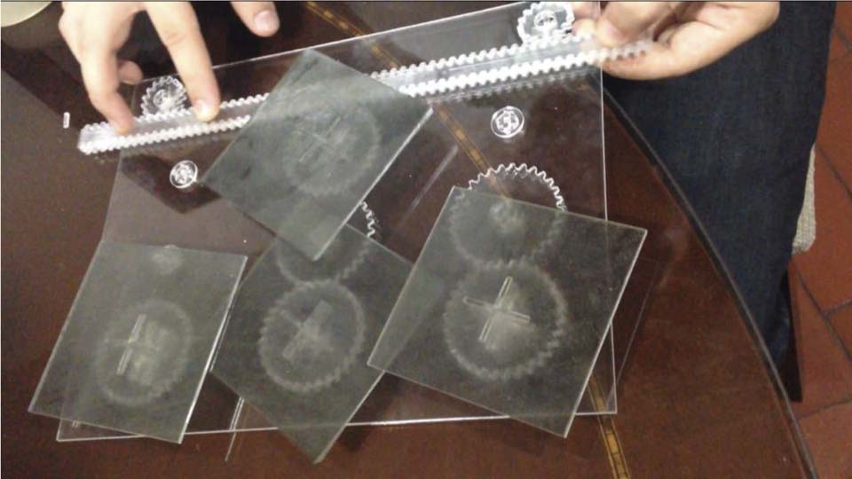 For the final prototype I worked also with 2mm “Cast Acrylic Clear” and linear polarizer. The reason to use the Acrylic Clear was because it is similar to glass. It is Weather-resistant; it’s resistant to mechanical stress, 100% recyclable among others. I used laser cutter to cut the basic gear system and the linear polarizer.