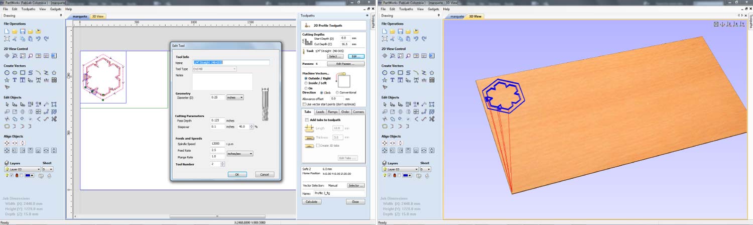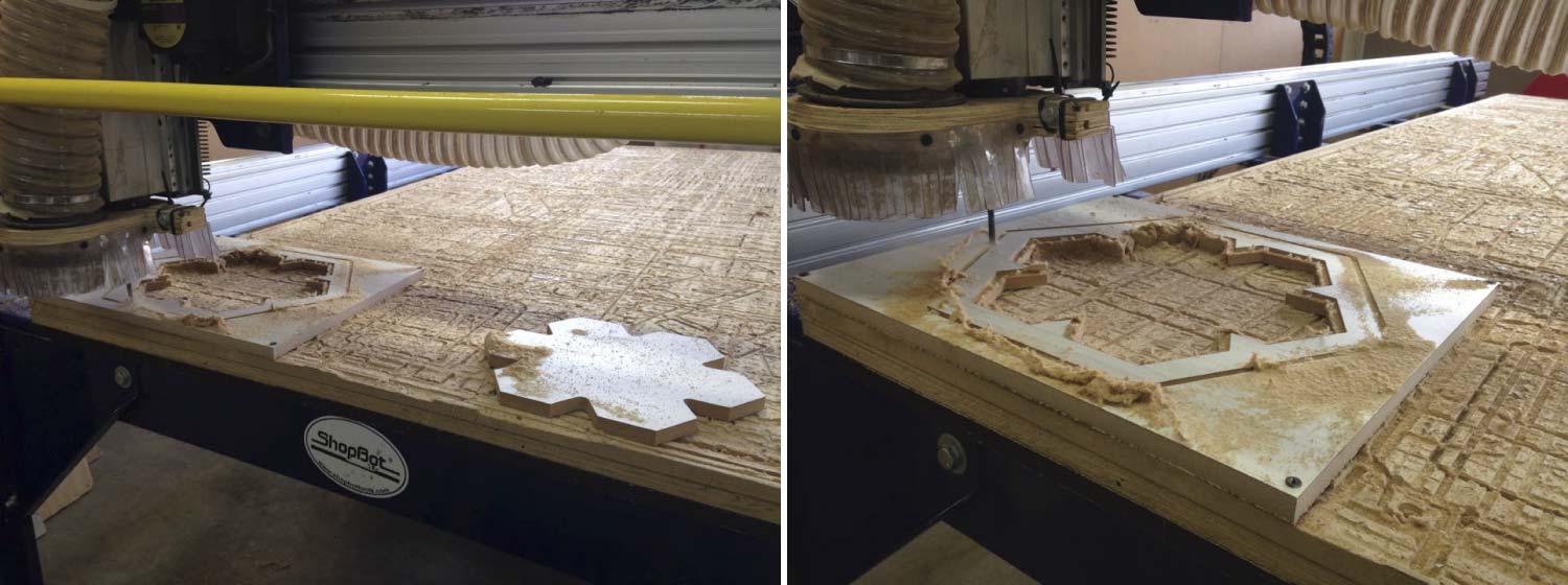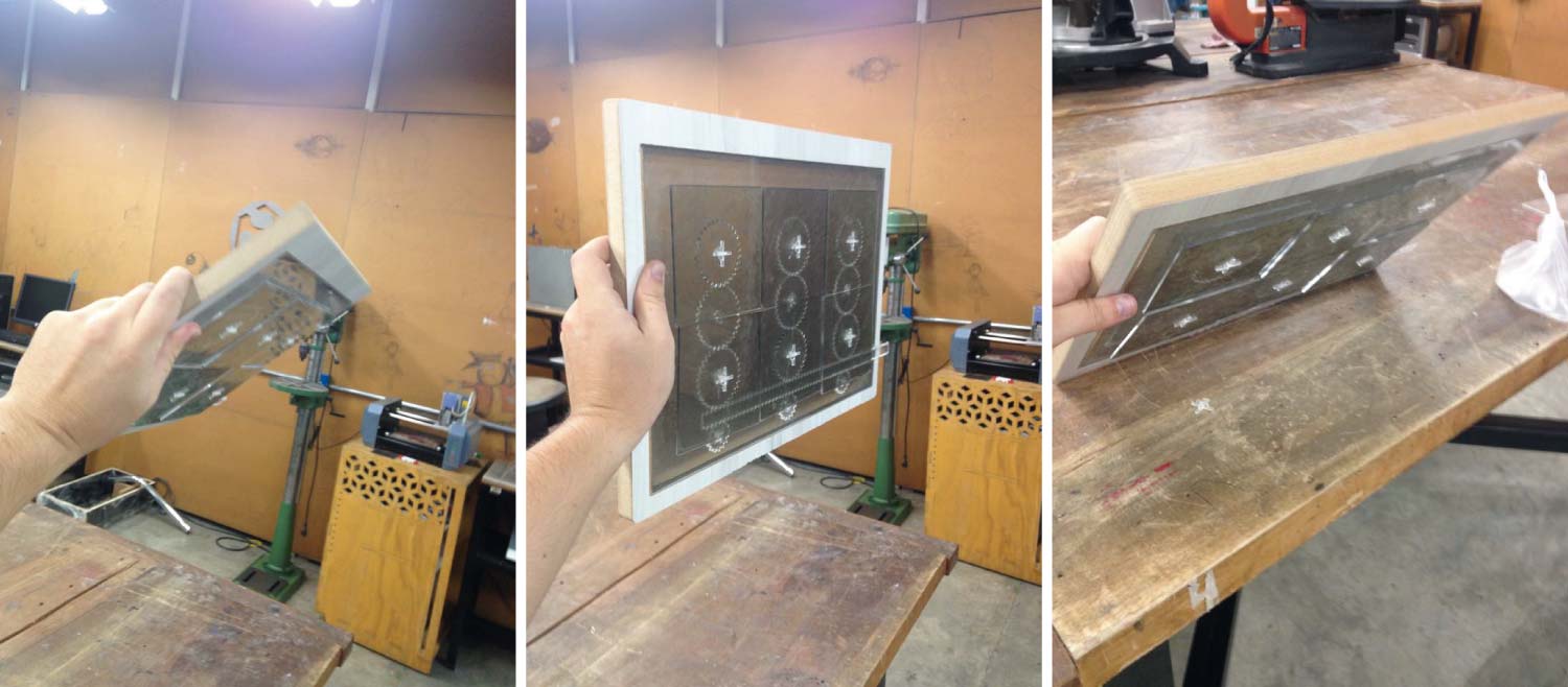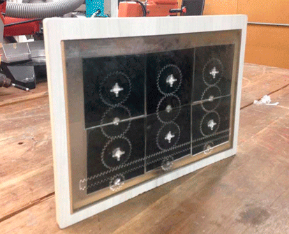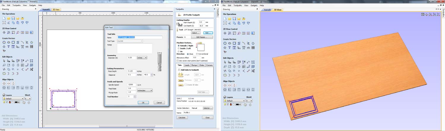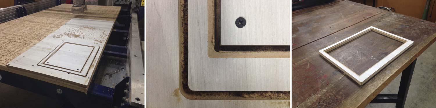 I decided to make a frame in the Shopbot CNC machine; I used a leftover of 15mm MDF. The bit I used was a ¼”. The framework had a pocket that allows the acrylic coupled with it.