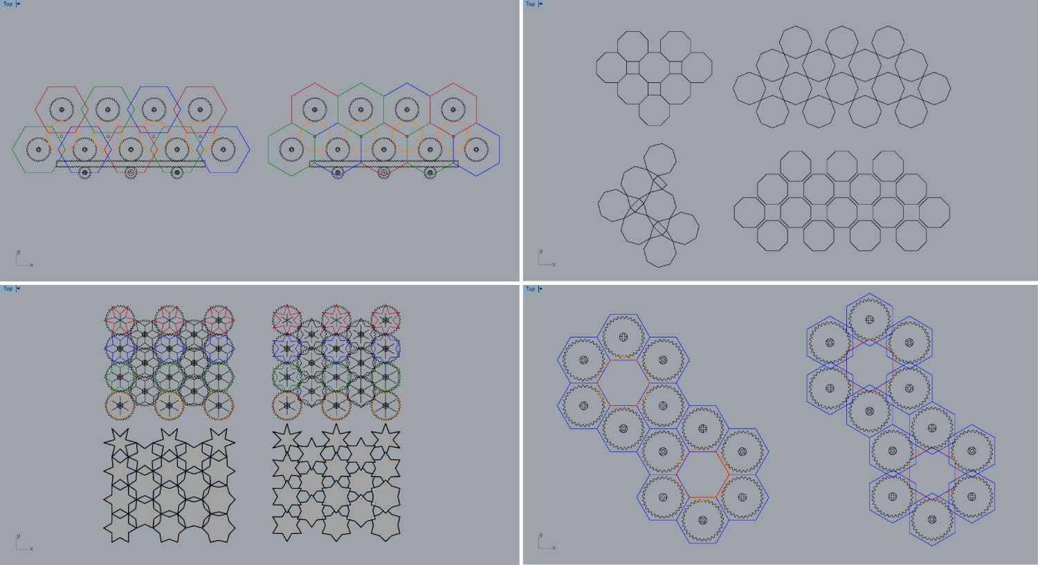 I had a system that worked, but there was something missing, the shape was not good enough and the system worked but it could be more efficient. By recommendation of my local instructor I started all over again. The purpose was clear; achieve a modular shape with more “formal richness”. I started by looking for tessellations, and any other modular shape that could be used in my final project.