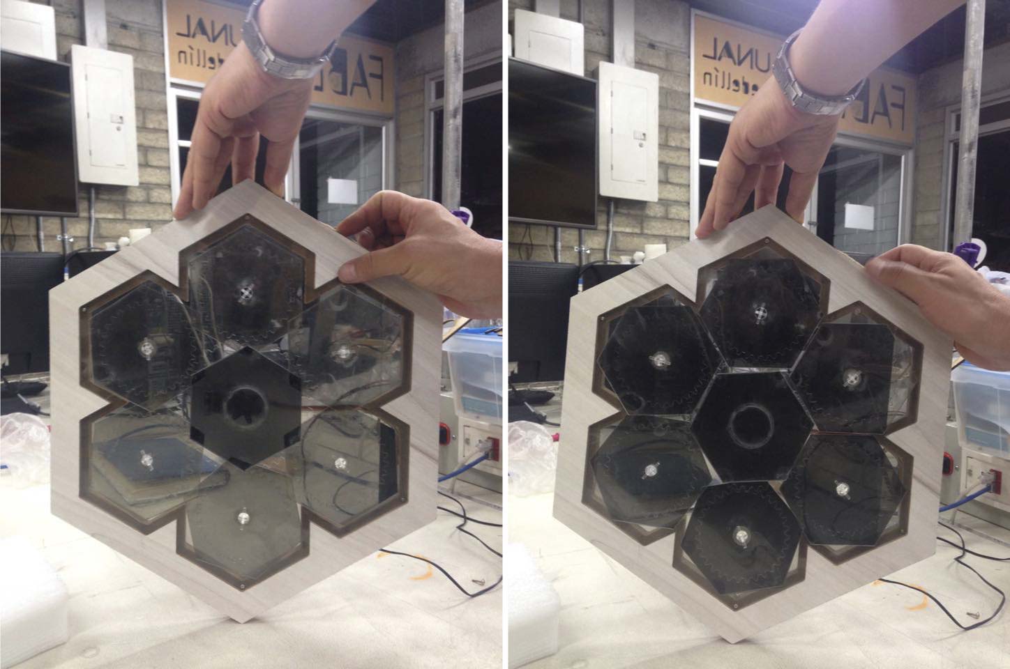 The GIFT bellow shows the prototype working. The panels rotate with some difficult because the joints were not enough loose.