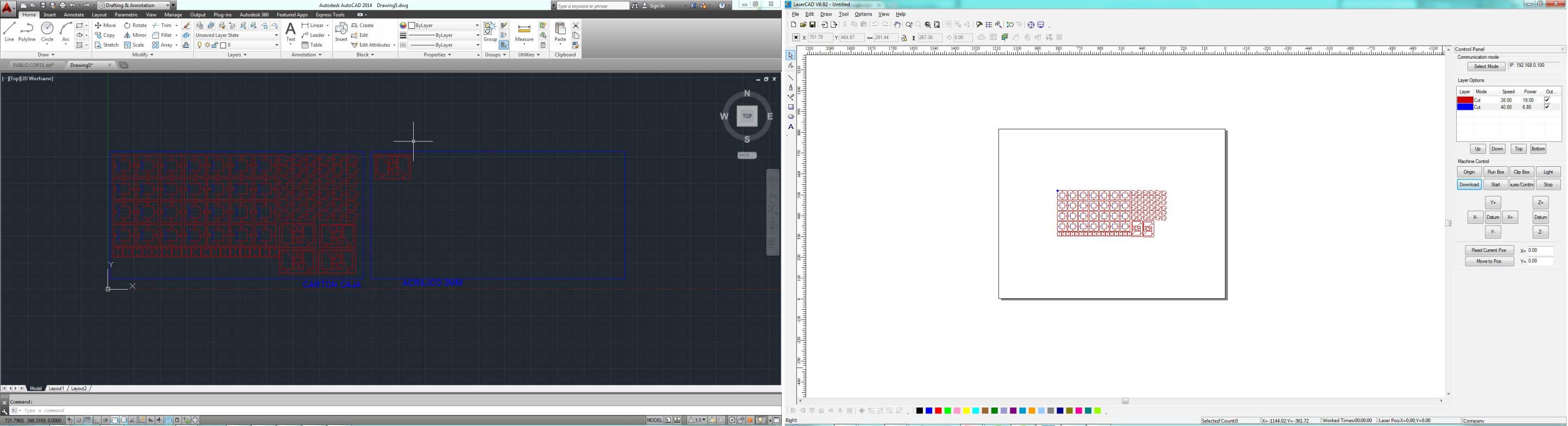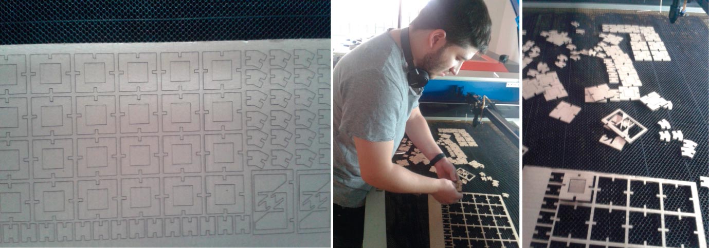 Our local laser can’t work with high speed because it decomposes and begins to cut badly, with curly lines as you can see in the image bellow. When we cut something at high speed, the laser head collides trying to follow the cutting lines. That’s the reason we use low speed and high power. Obviously that affects the finished of the element.