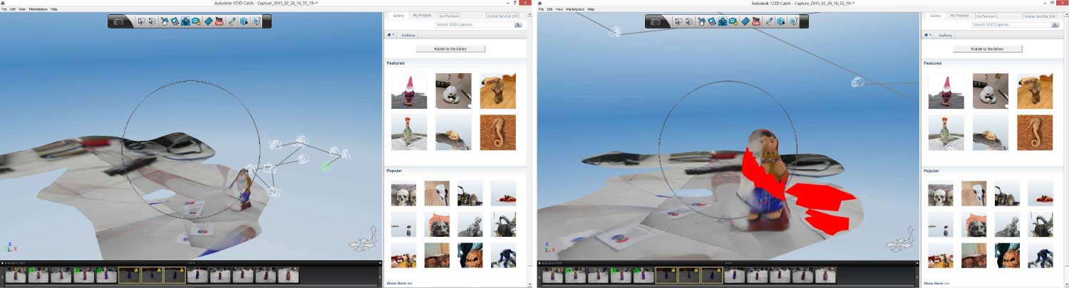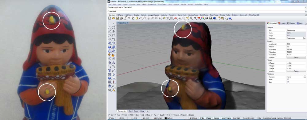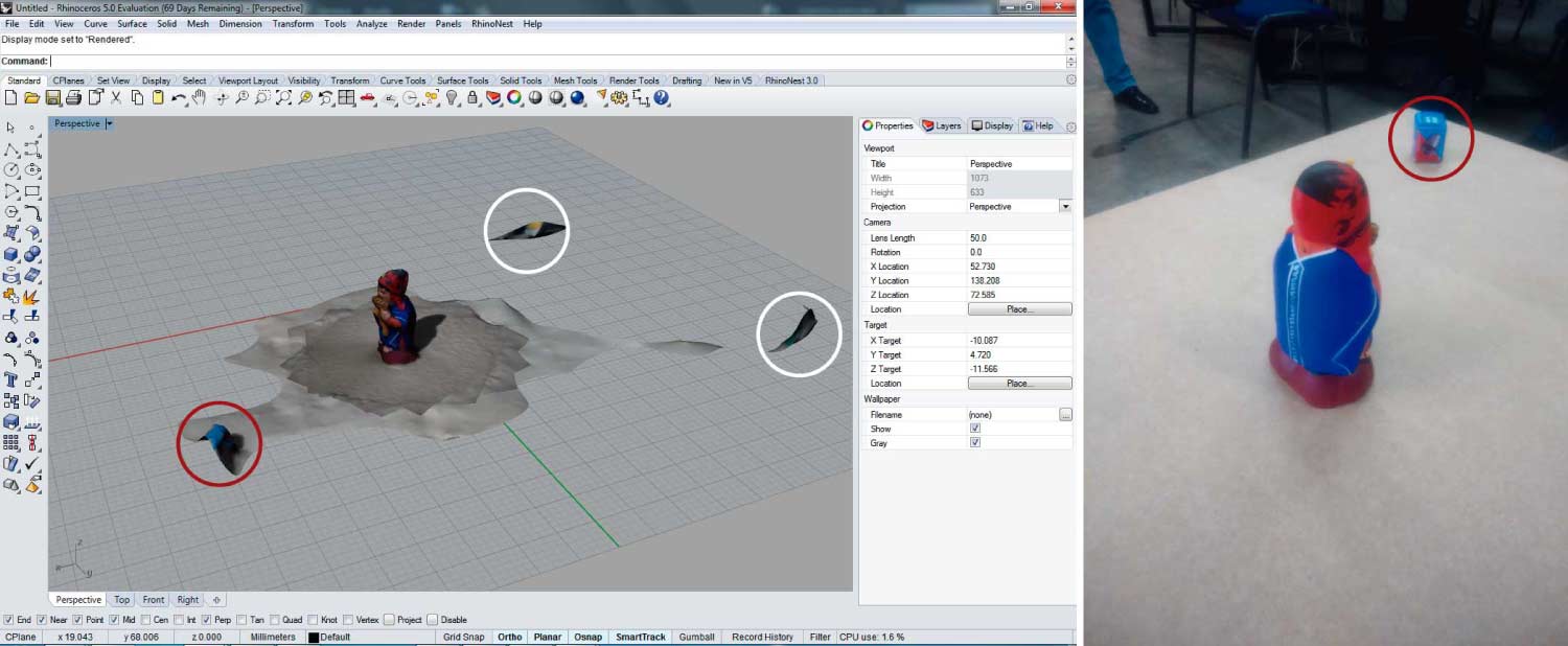 In the first attempt to scan an object we made a mess around the object, trying to understand the basics of the 3d scanning. With the instruction of our local architect friend Andres Hincapie we learned to keep the scanning surface “clean” having only a few strong color reference objects as we’ll see below.