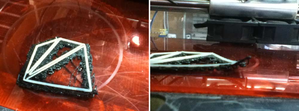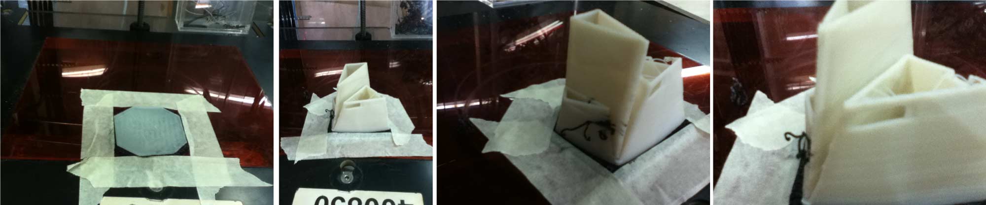 We follow some advices from our “Supernode” and used a piece of acrylic to fix properly the elements to the bed. It works better than the original bed surface from the machine, but still we had to add some tape to fix really well the element as we’ll see in the images bellow.