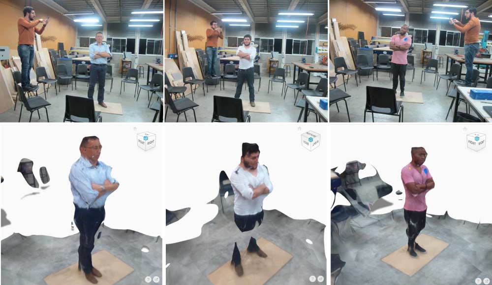 Besides, avoid reflective surfaces like glasses because it can cause deformations in the object. Blinking is also a “problem”. Try to stay quiet like a statue as long as you are being scanned.