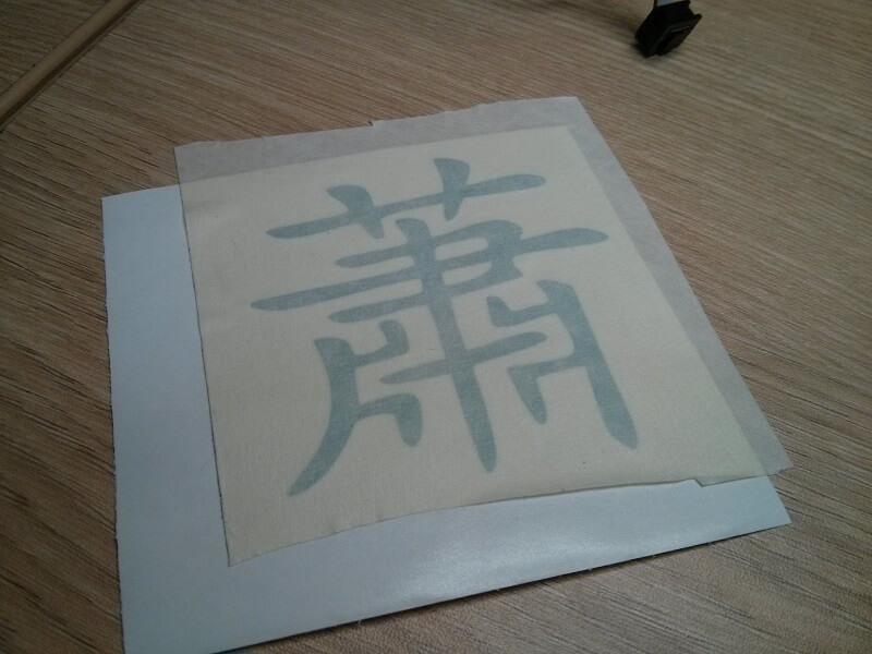 Having the design ready, a piece of transfer tape have to be pasted on top. The transfer tape helps paste the vinyl decal in the final place desired. I cut out a niece square to store the decal for later.