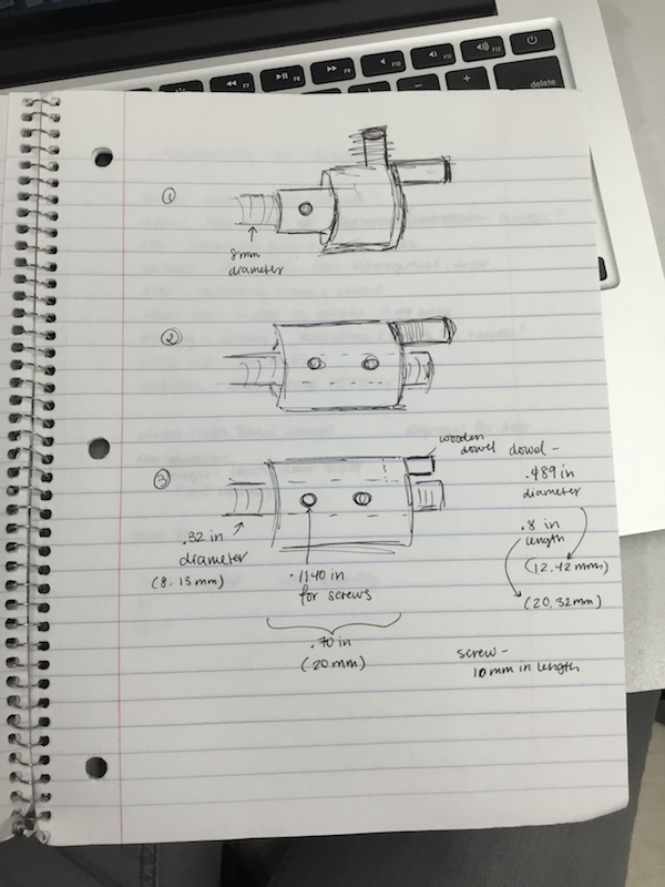For our group project, I was tasked with designing accessories such as a knob and also for documenting the procedure we implemented and any issues we encountered. As you'll see, the part that I have documented for the accessories isn't very large because working on taking notes and pictures and overall documenting the group portion for both weeks was my primary contribution. I sketched then designed a knob in Tinkercad to turn one of the axles.