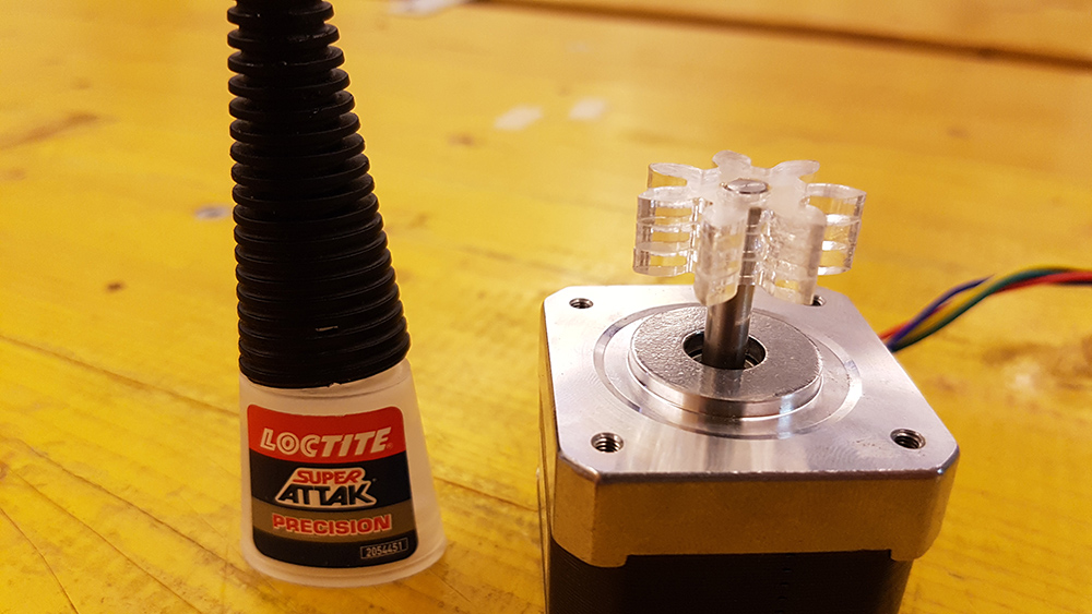 I started to assembly from the base. I mounted on it the lower part of bearing and the bigger gear.