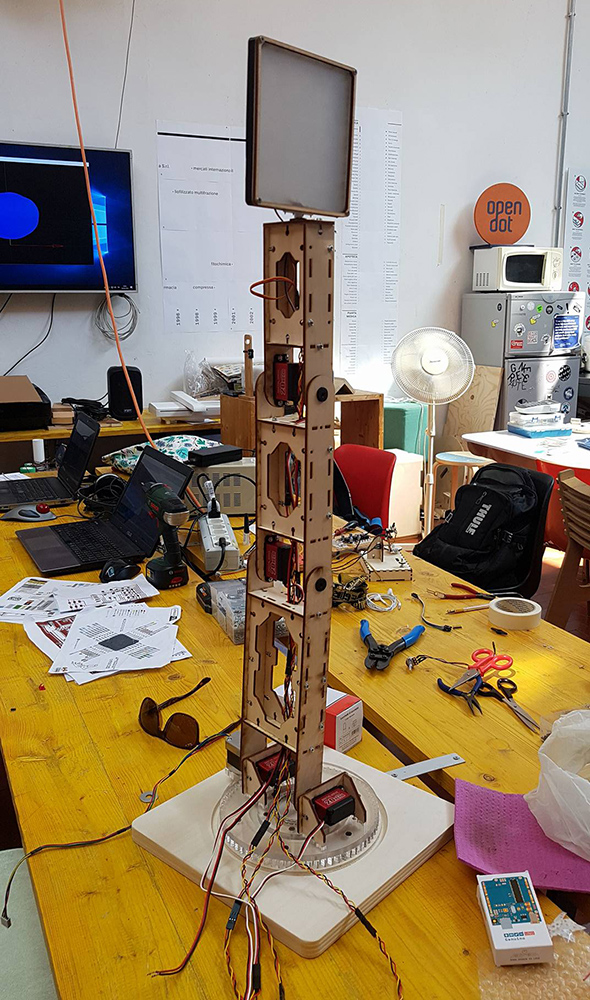 After that I start to write the code. I was able to write a code for controll Servos and the LED, and another one for controll the stepper. They work well when uploaded stand alone on mictrocontroller. Unfortunately I didn't find the way to match the two codes in a single one, but i know I can solve this problem using "millis" variable instead of "delay" and creating an interrupt in which run the encoder script. In the future I will develop this part.