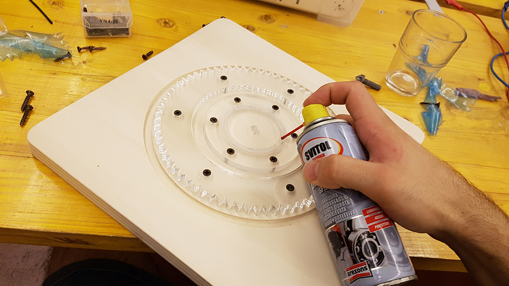 Then I added some grease compatible with plastic and put spheres inside the grooves and
