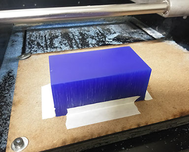 I placed the wax brick in the modela and fixed it with doble face tape, uploaded my .stp file and converted it automaticly to .png.