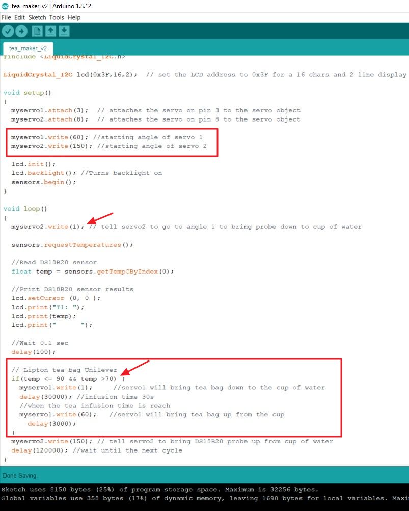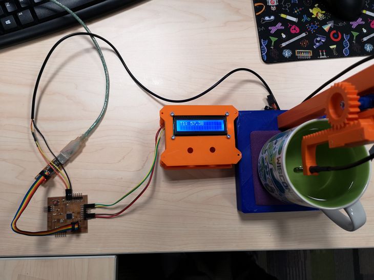 It can be seen in the video that the program worked well where the temperature sensor measured the temperature of the water to be 85 degree Celsius and then the tea bag is lowered to the cup and remained there for 30 seconds.
