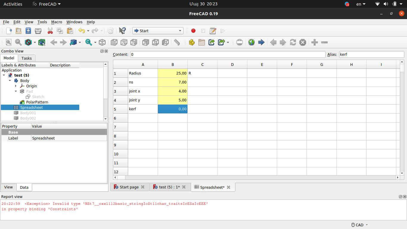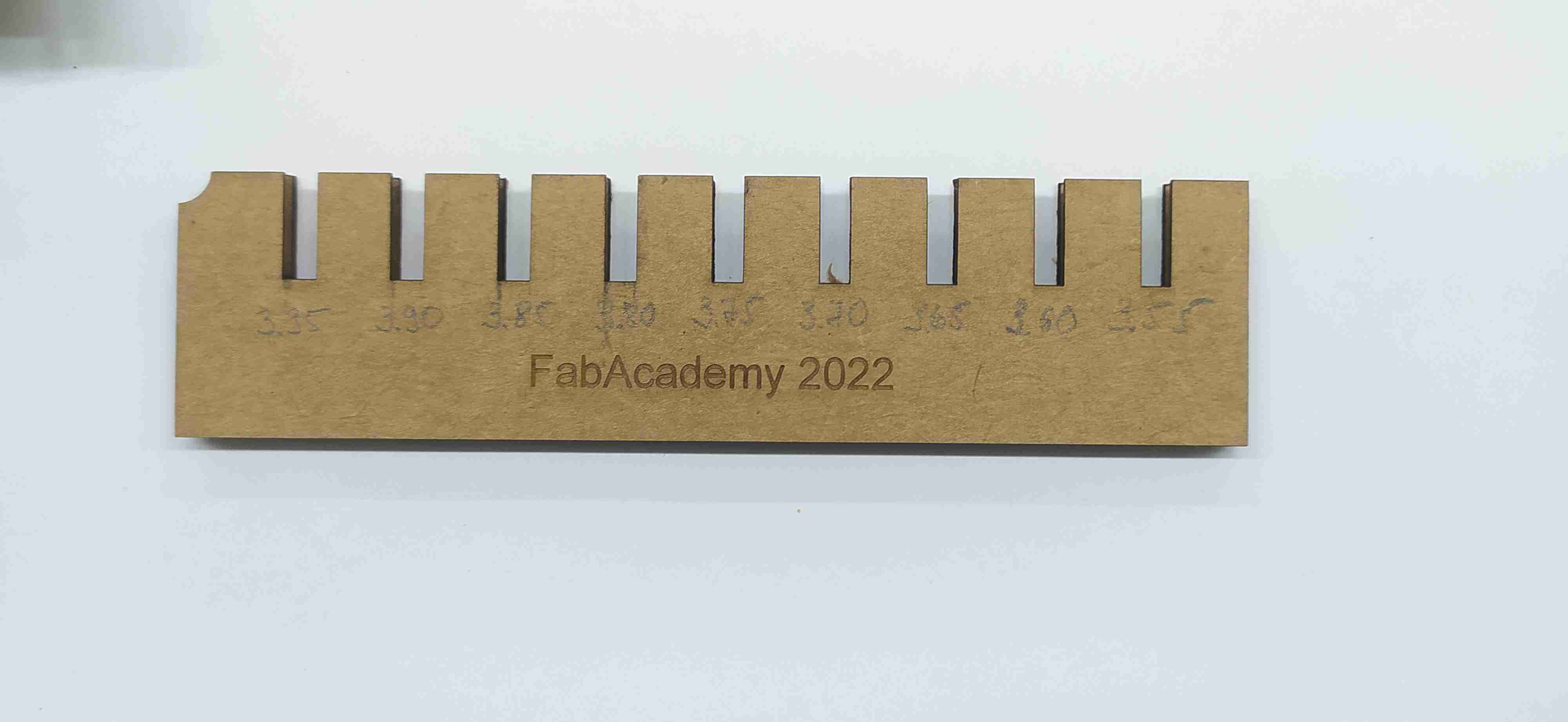 After having two test combs, I did a tolerance test. The best matching size was 3.8 mm. Please notice that our kerf was 0.11mm to 0.145mm and if we take into count both sides we will have 0.22mm to 0.29mm. Having the joint parameter, I set it in Freecad.