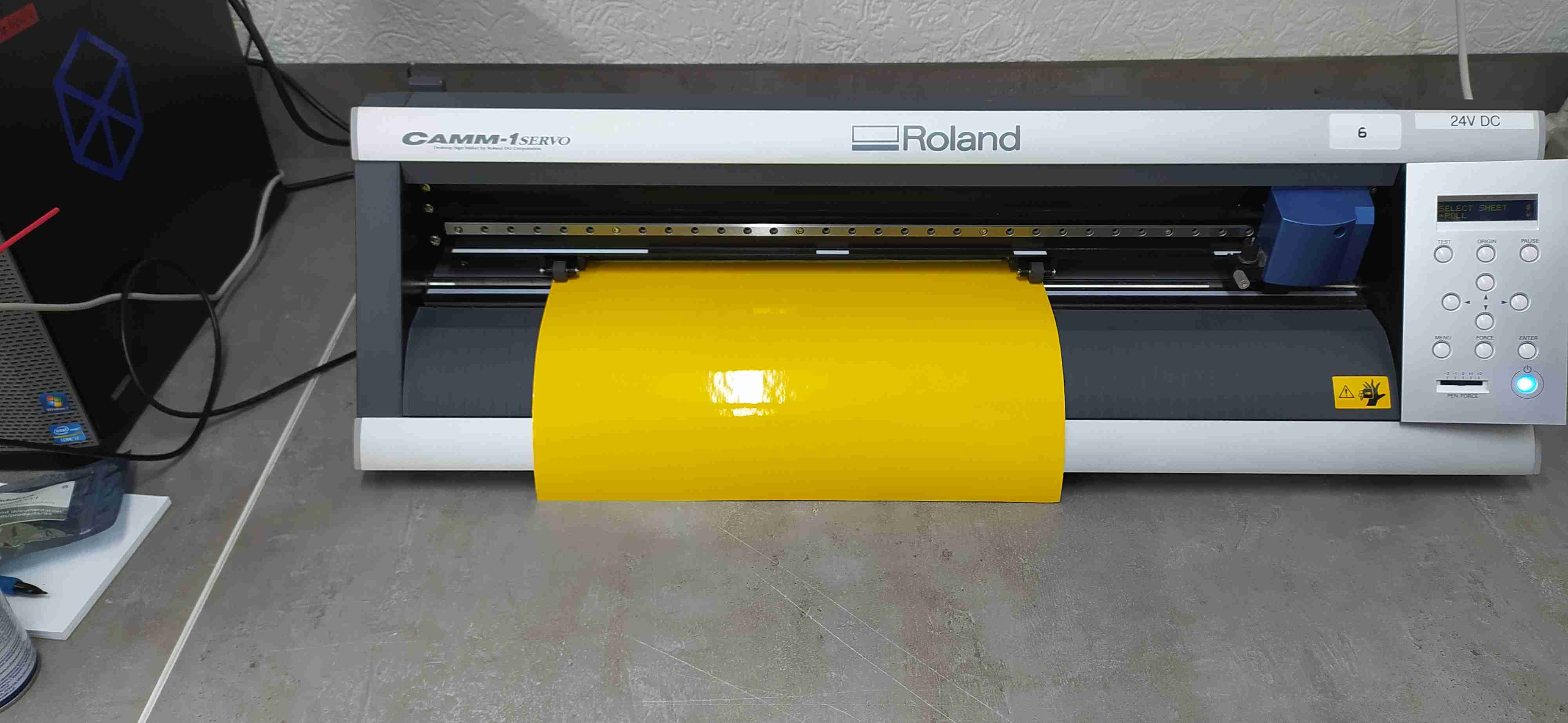 When the file was ready, I loaded a piece of a vinyl roll. Before cutting the file, I did a test cut to find the best value for the force parameter. You just need to push the test button.