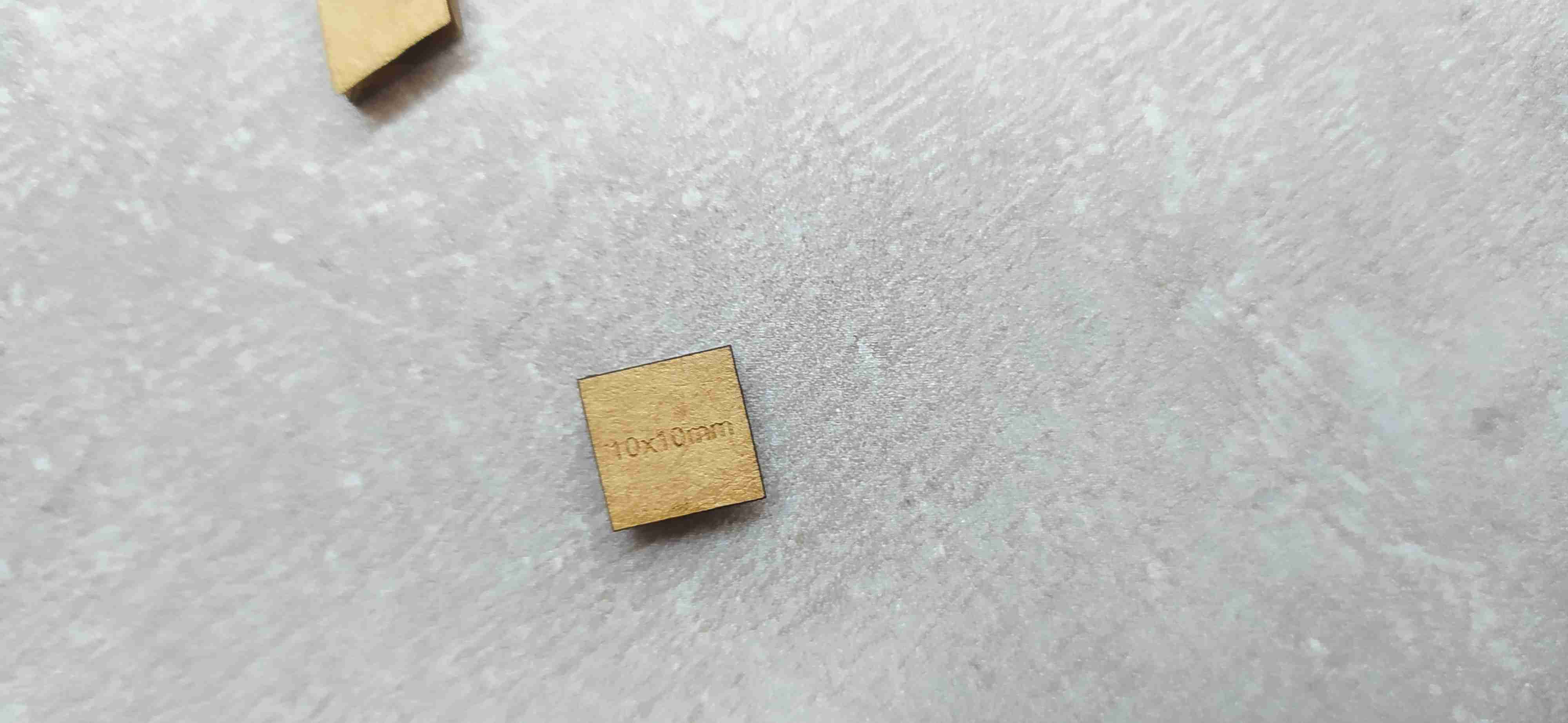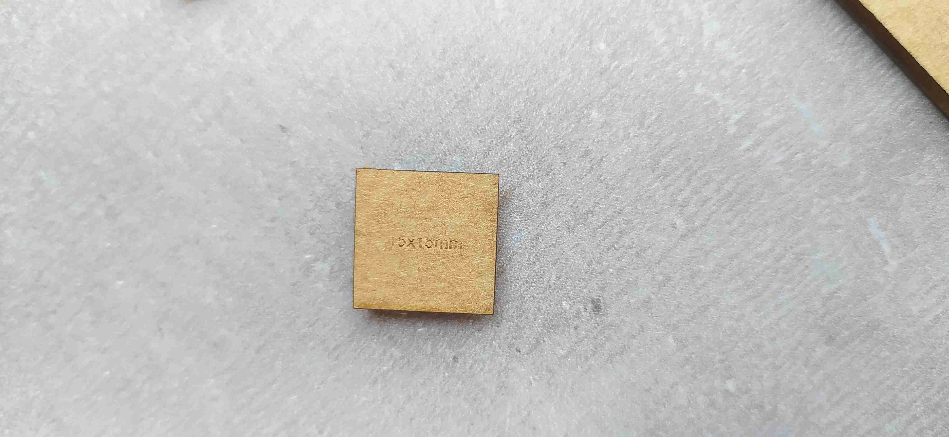 In the case of the 10mm square the measurement was 9.78mm so the kerf is (10-9.78)/2=0.11mm In the case of the 15mm square the measurement was 14.71mm so the kerf is (15-14.71)/2=0.145mm. The slight difference between kerf can be explained as a result of not ideal material. Our cardboard was not ideal, it is curved so the focal point changes depending on where exactly the laser cuts.