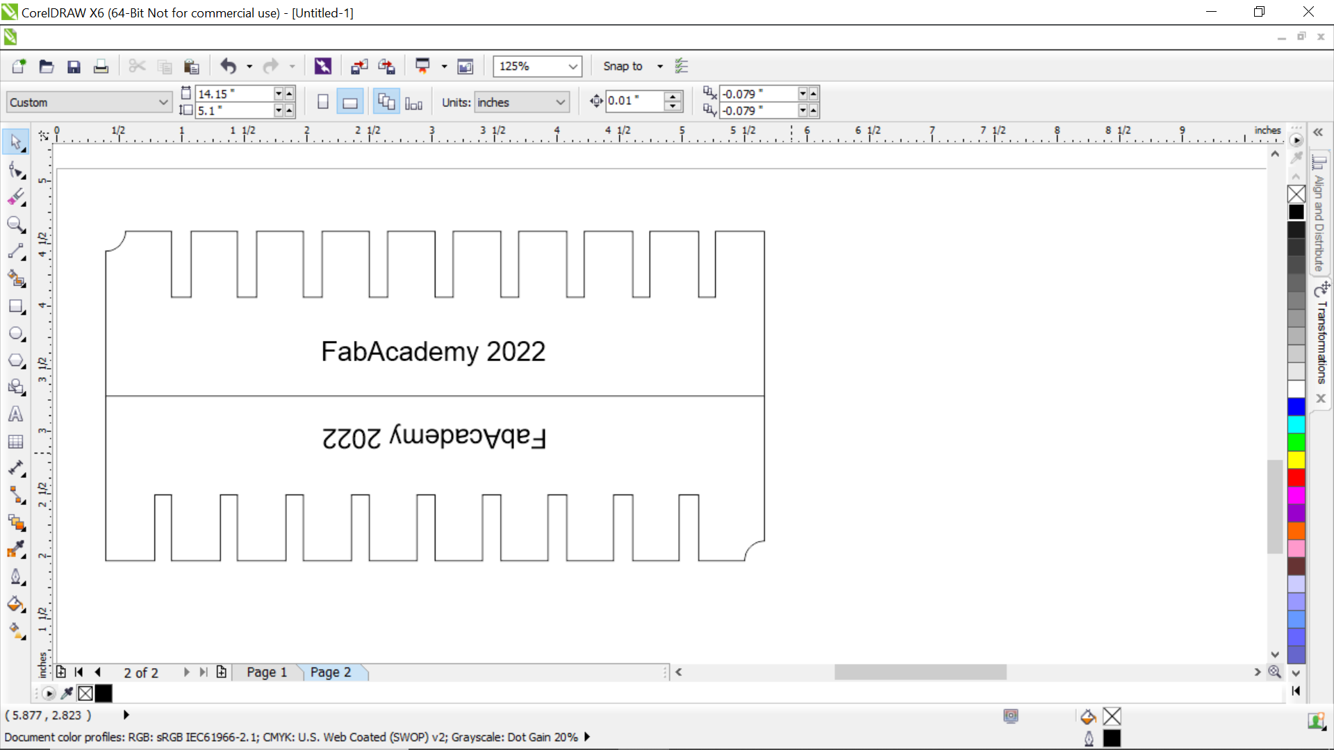 After finding the best value for force, I set the page size and placed the logo and text to cut.