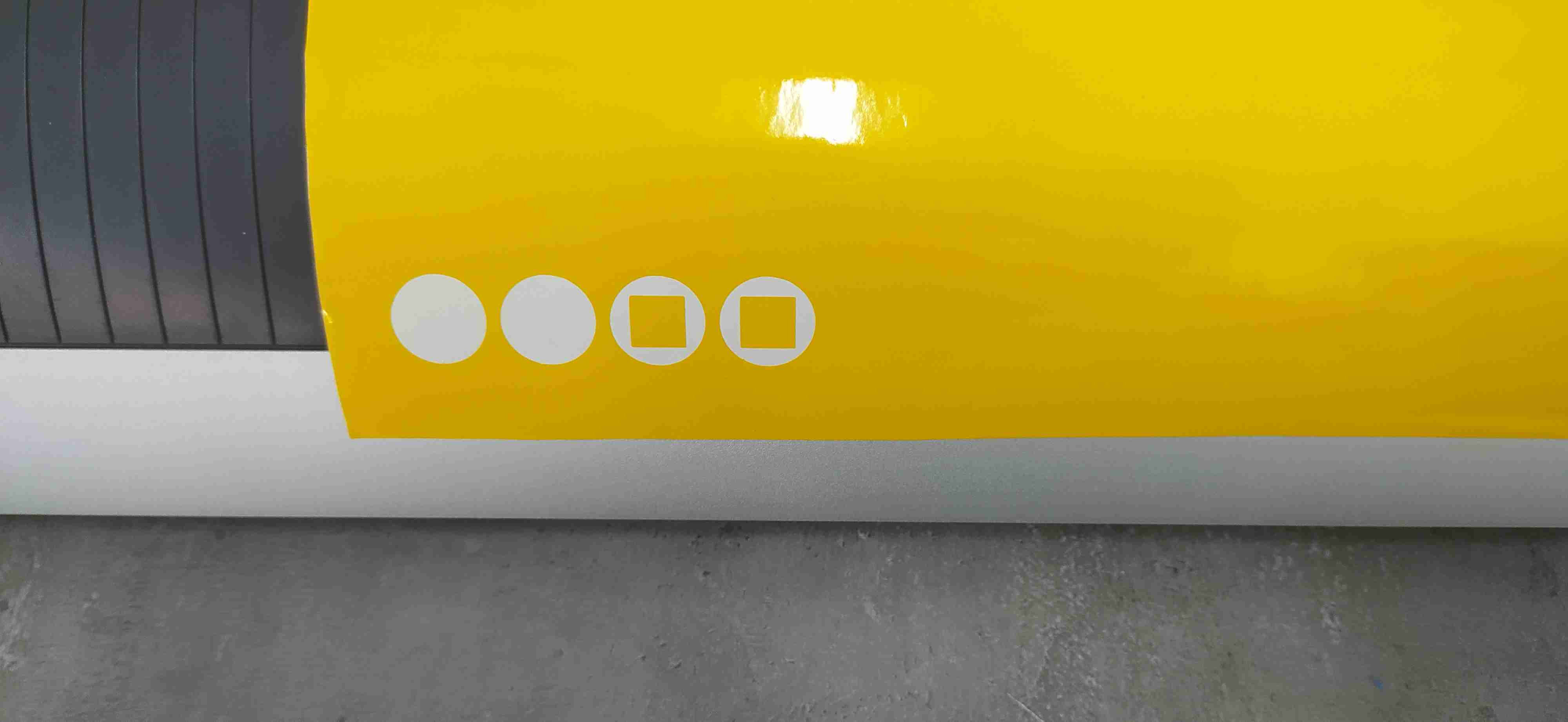 As you can see image above, I cut a circle and rectangle inside it. This is the standard test cut of the Vynil cutter. You need to press a test button to cut it. To have a perfect cut the rectangle has to stay at its place after removing the circle.