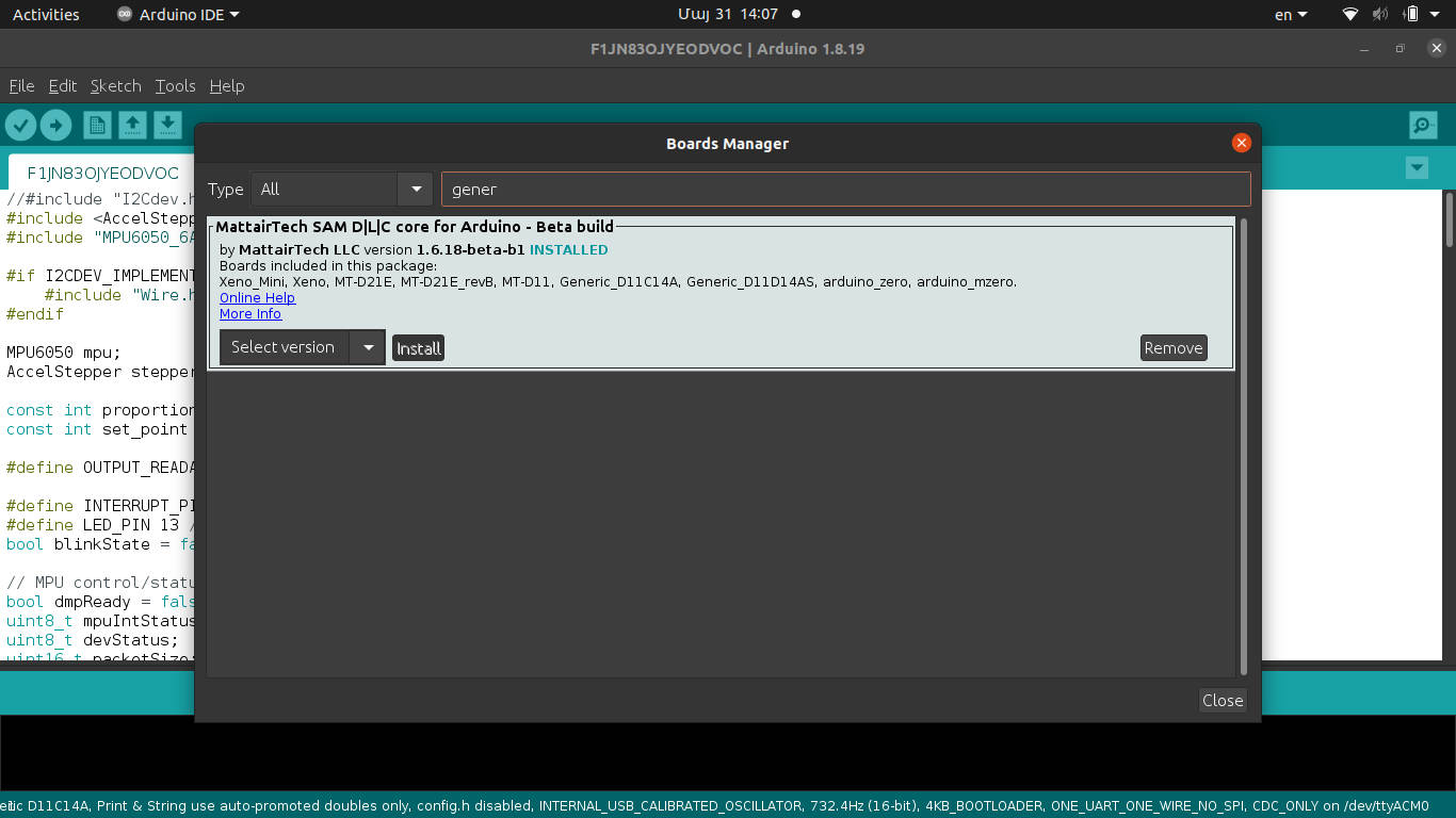 Then you need to open Arduino IDE and install generic board package for samd11c.