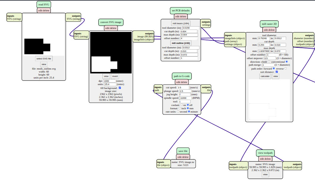 Finally, I used mods to generate Gcode files for SRM-20.