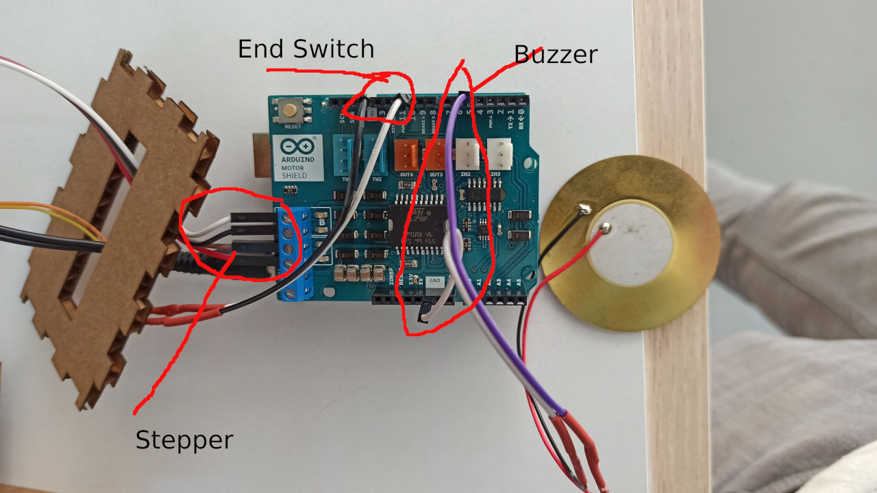The electronics part isn’t complicated. I used Arduino UNO and the motor driver shield to drive the stepper and a switch to detect the end of time. Logic is simple if a switch is not pressed stepper does a step that corresponds to one second until the switch is pressed. Below you can see the Arduino code.