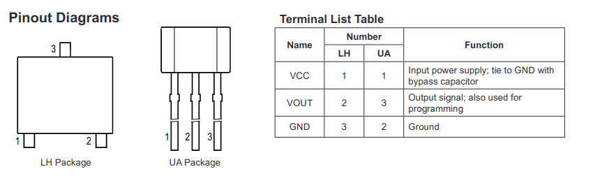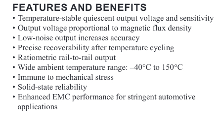 So, before designing a PCB I read the datasheet of A1324, to be sure about packaging, input voltages and output signals. Below you can see the feature description and packages of A1324.