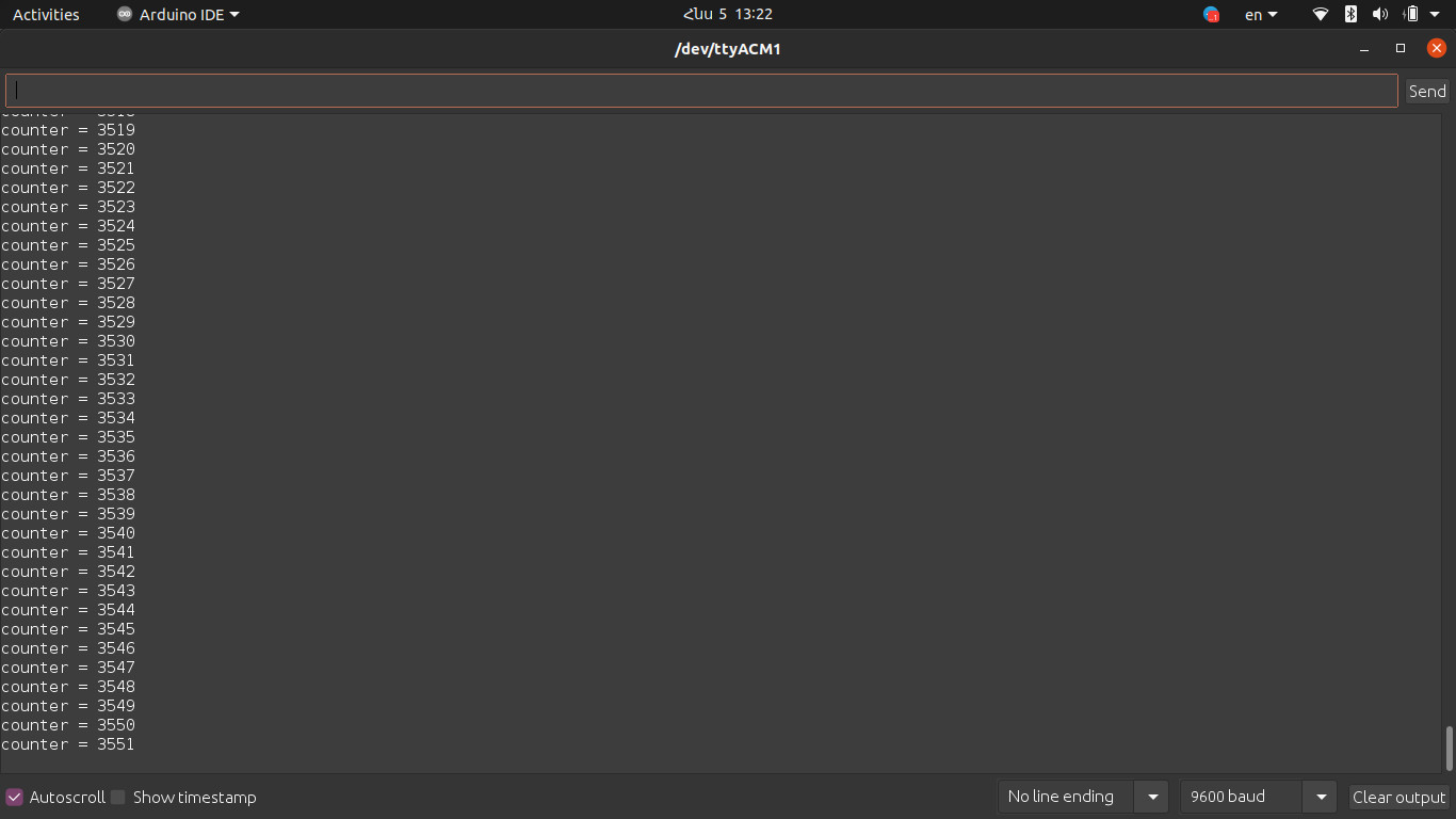 There is a variable called “counter”, it is incrementing at each iteration and my board sends the value to the receiver. Here is the receiver code.