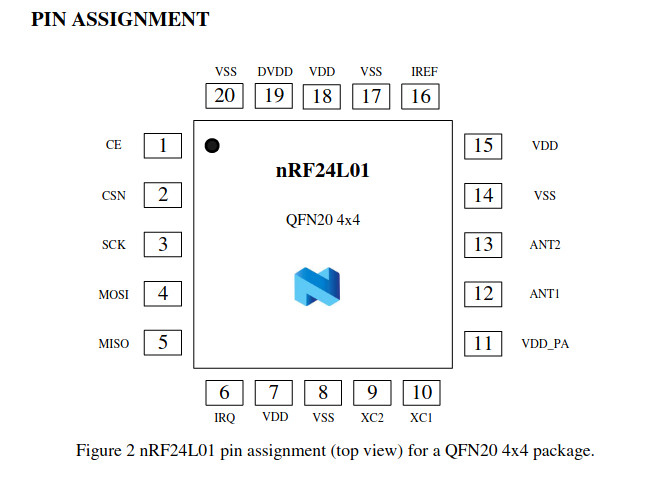Below you can see the pinout of the NRF24L01 module.
