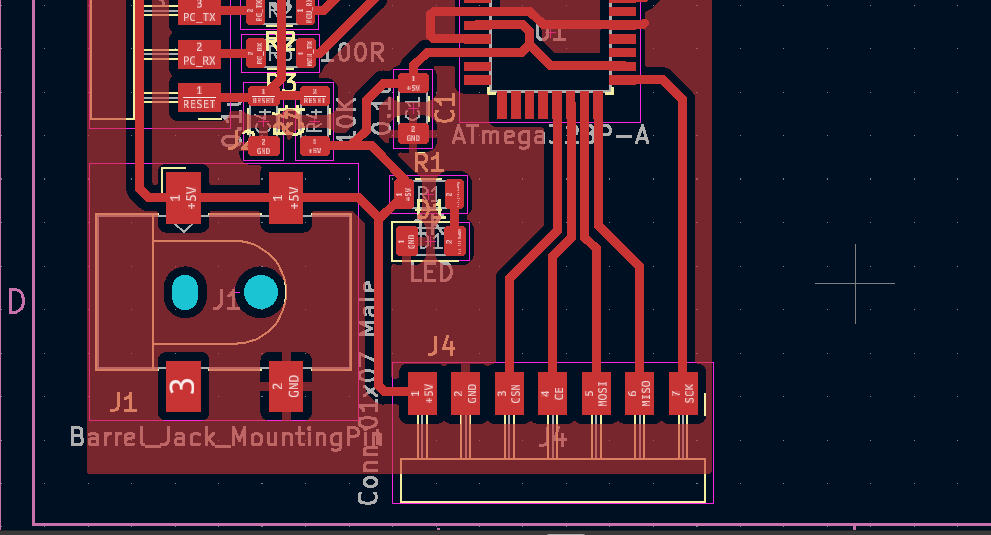 For this week I tested the NRF24L01 radio module with my board from Output devices week. I connected one module to my board and the other one to the Arduino Uno. My board is the transmitter and Arduino is the receiver.