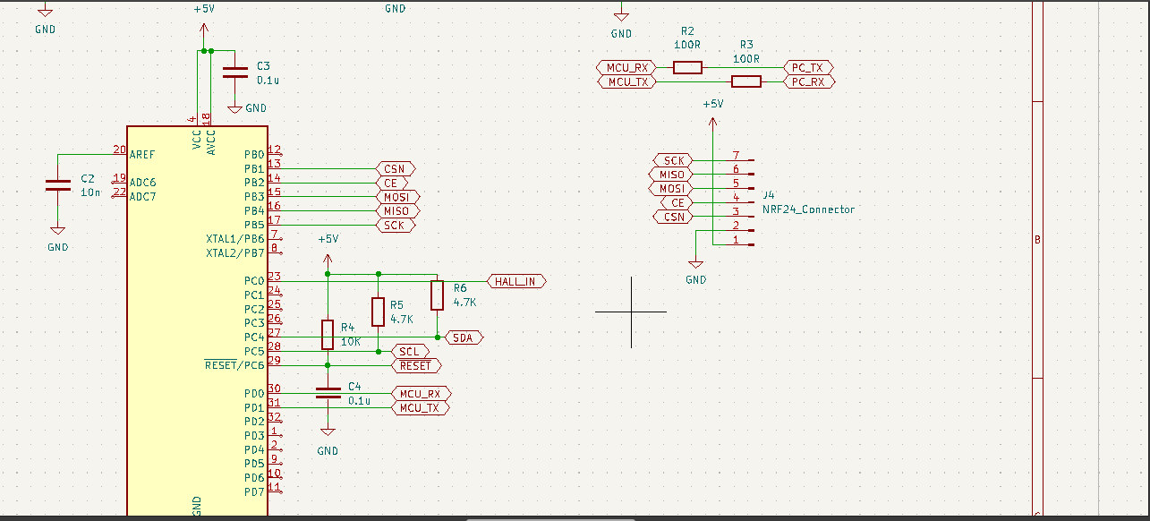 To interface this module with my board and with the Arduino I read this really helpful tutorial. Below you can see the schematic and layout parts of my PCB that are designed to interface with this module.