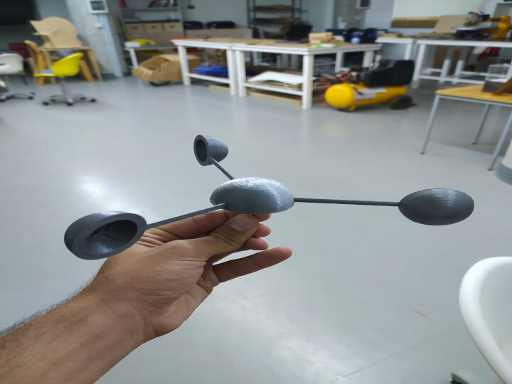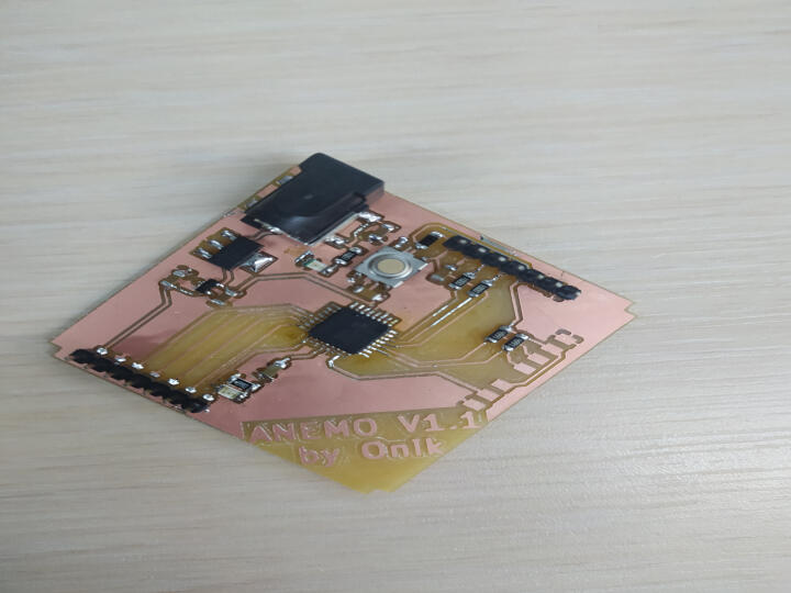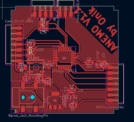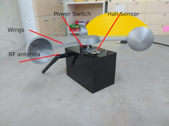 Anemo is a device, that uses a hall effect sensor, magnet, wings and MCU to measure wind speed, then sends it to the PC using RF module. Below you can see the image.