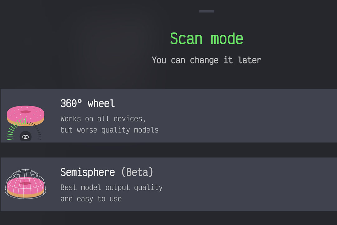 You can choose from 2 options for scanning, I choosed the 360 Wheel because the other option is still in development.