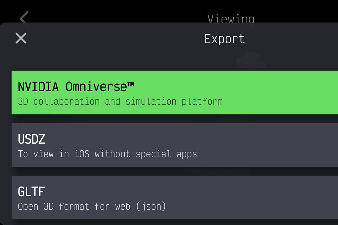 NVIDIA Omniverse, USDZ, GLTF, GLB, OBJ, STL. FBX, PLY.