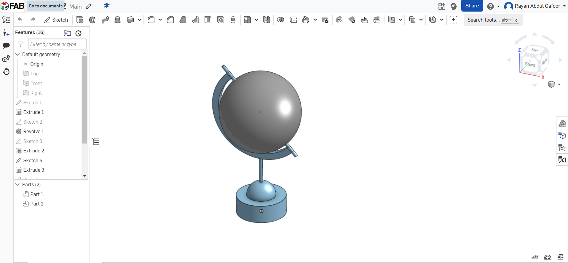 - Use circle tools to draw a circle represent the stand bar of the globe, and extrude it.