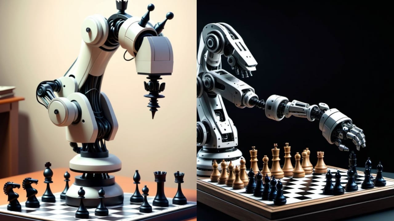 - I have used the prompt: Could you please keep in mind the following phrase: "An illustration of a futuristic, robotic arm for playing chess”.