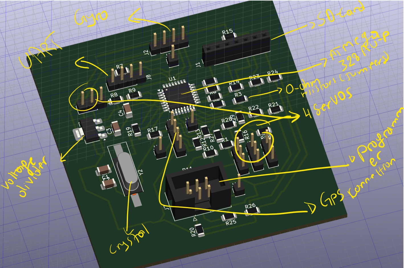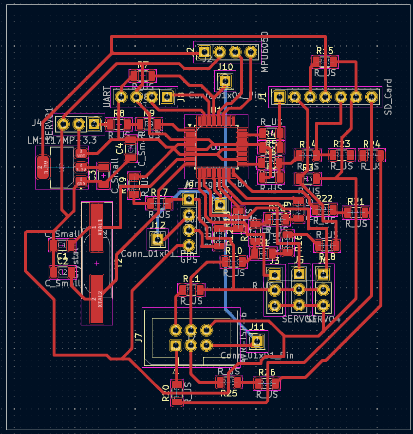 Regardless of the micro-controller I use, I wanted the board to have/be a integrated system (with a program on it) that can monitor the rocket's behavior, know where it is (Navigation), and allow us to control some physical subsystems on the rocket.