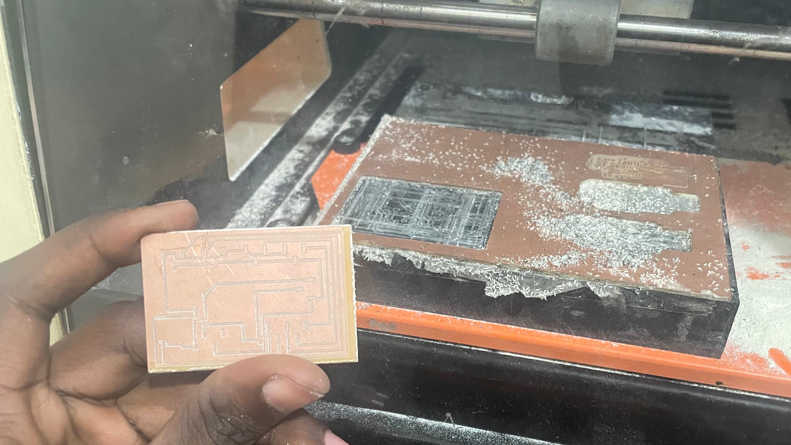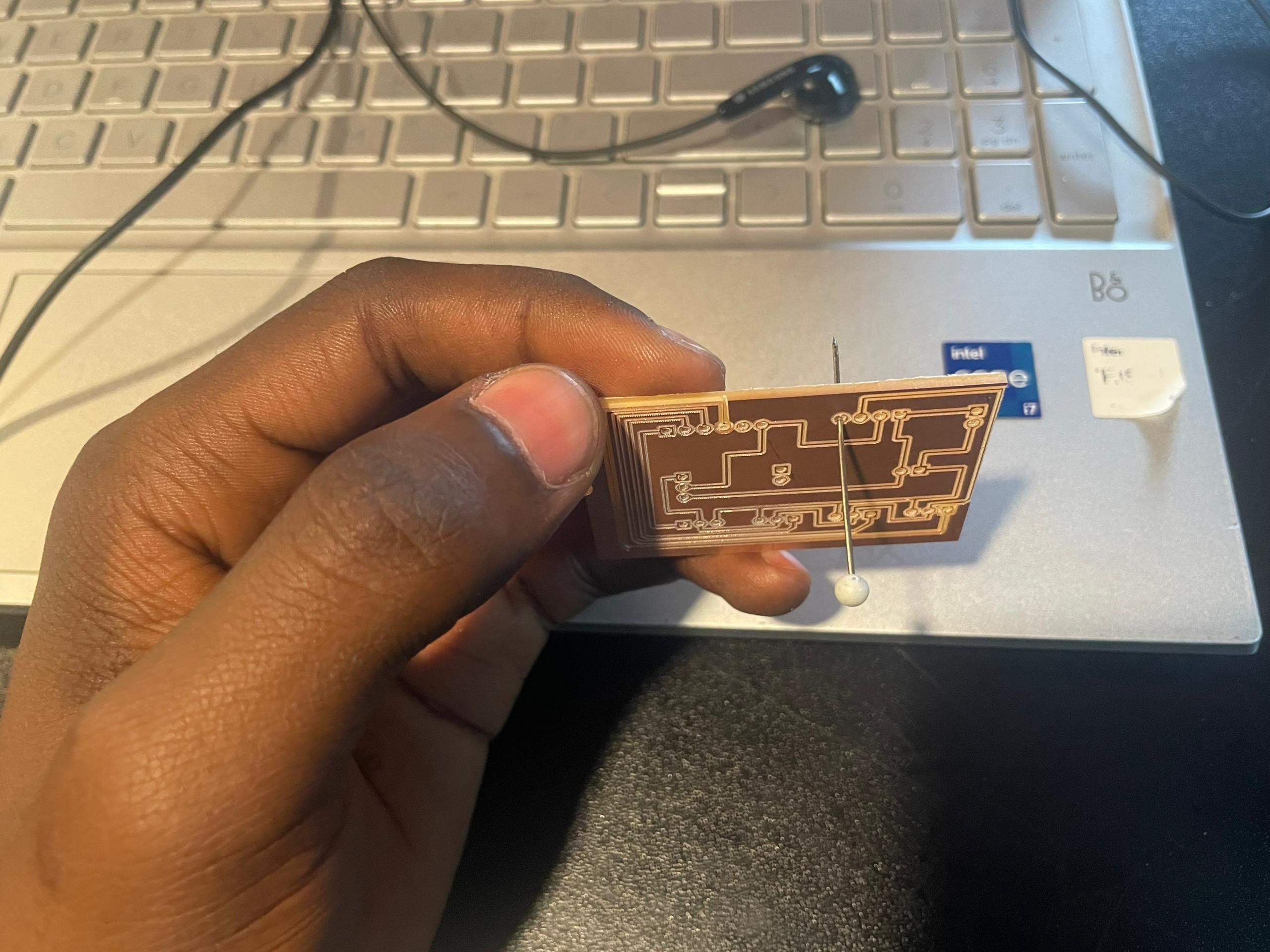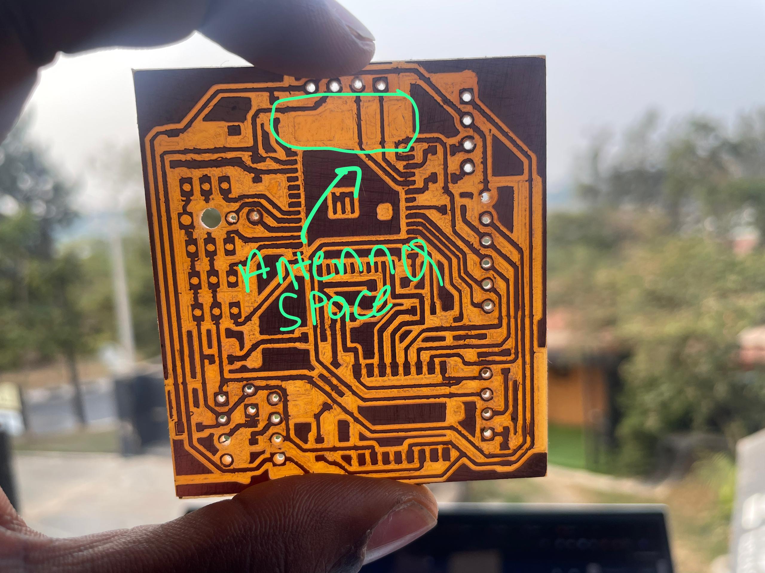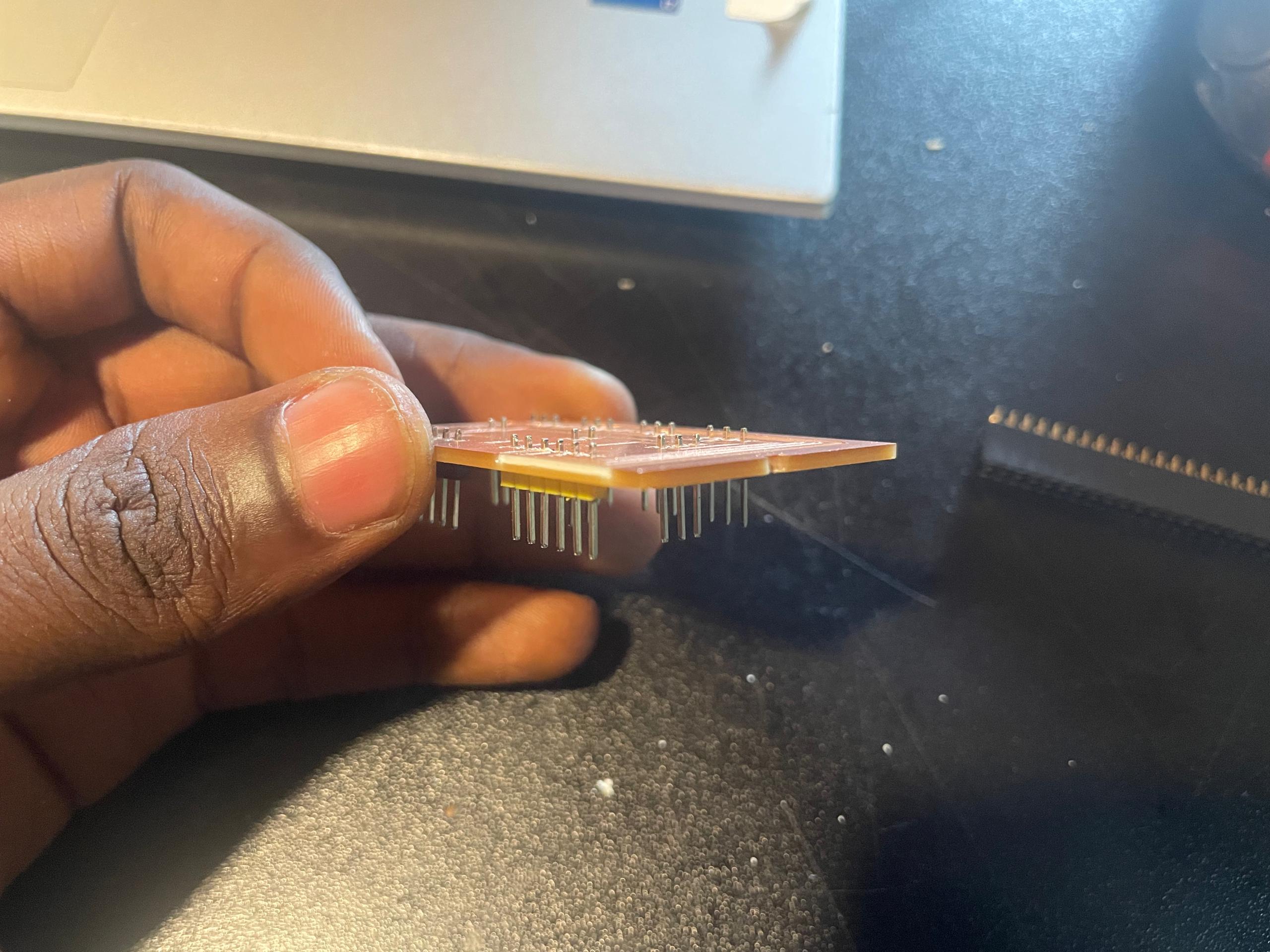 After printing my board I realized soldering aluminium pinheaders on the board (They don't easily as bronze), I then redisigned the board and featured through holes to make drills at the connection zones.