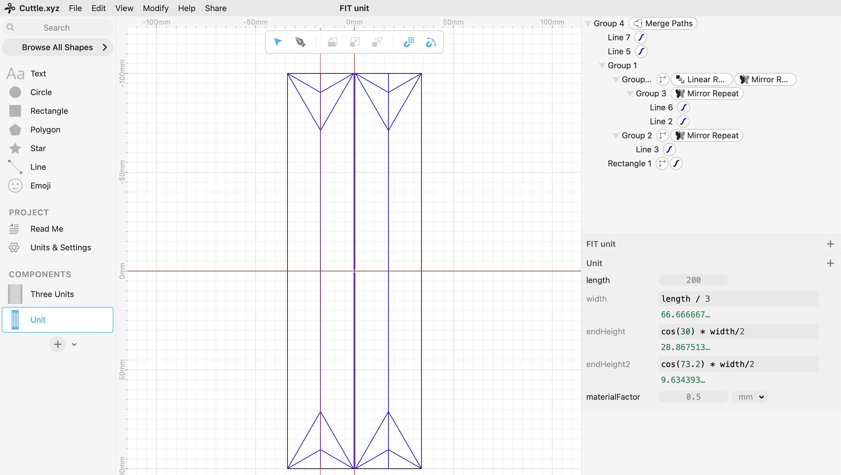 I took advantage of Cuttle's parameters and modifiers to make the cut and score lines.