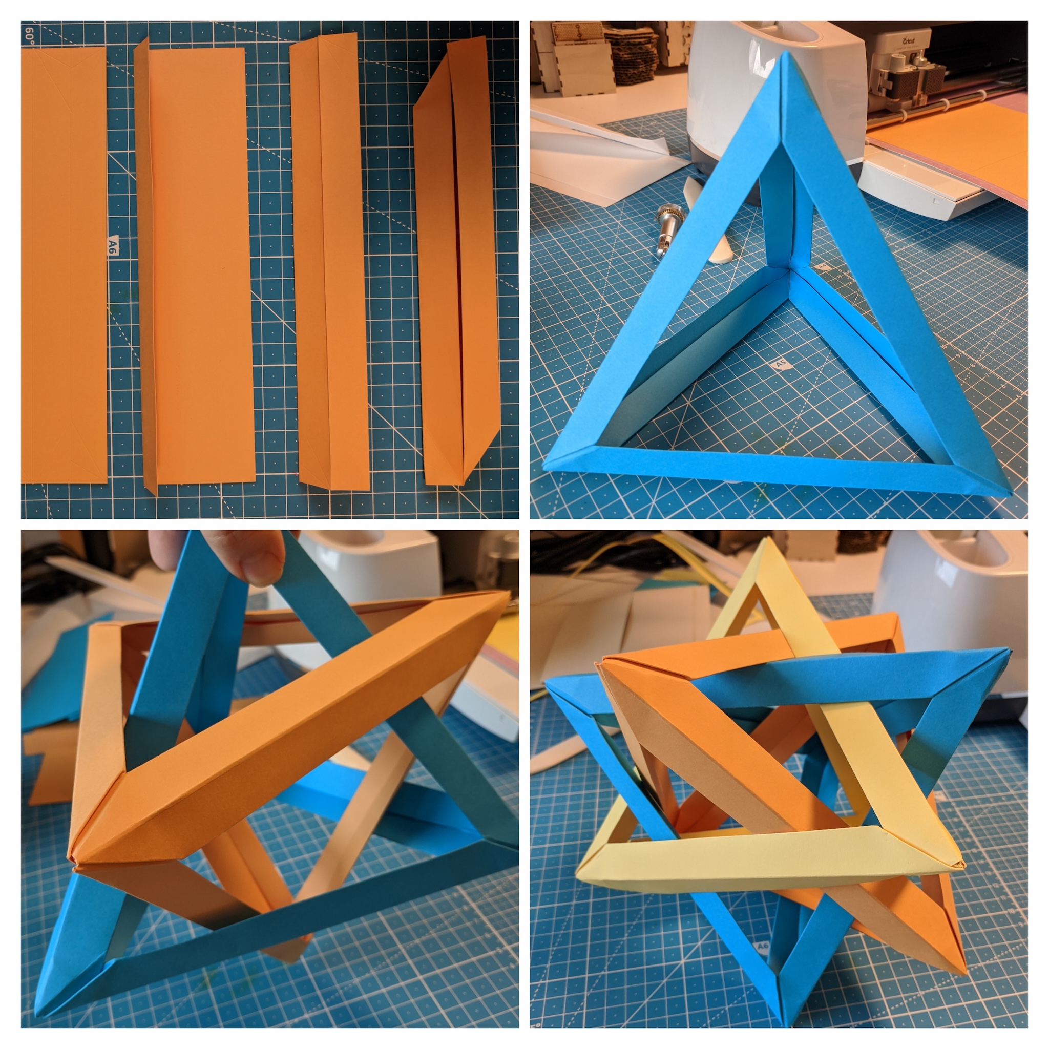 I made a modular origami part known as Francis Ow's 60 Degree Unit. These have ratios that make it easy enough to fold by hand, but by using Cricut to cut and score my material I saved some time, and ended up with very accurate parts.
