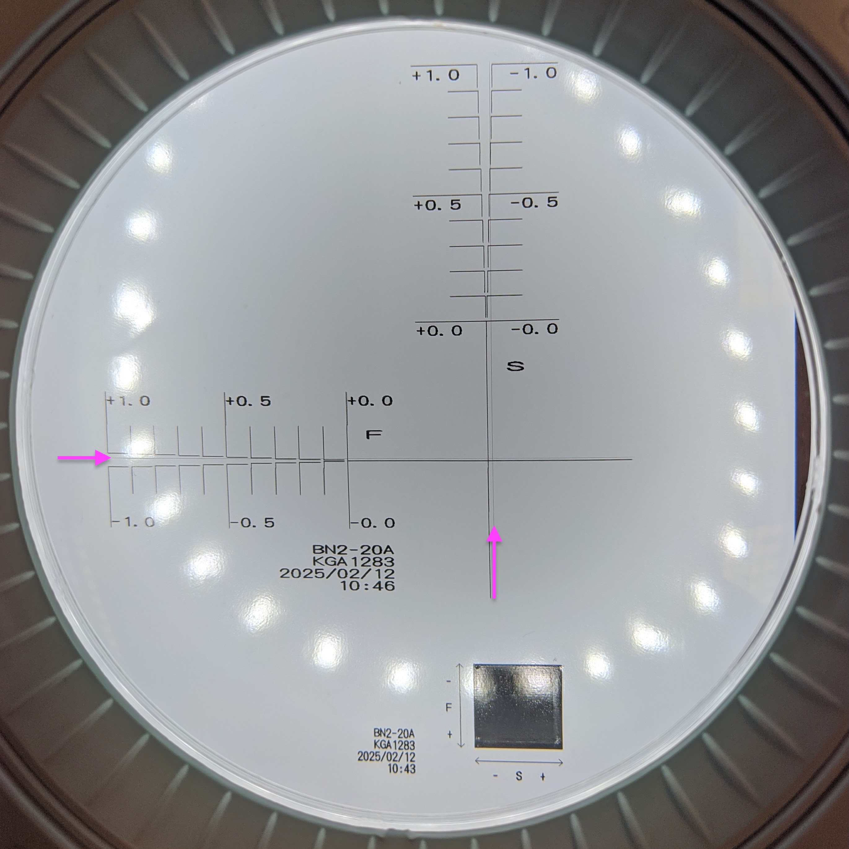 Roland calibration tester. Vertical and horizontal gauges show how much to change.
