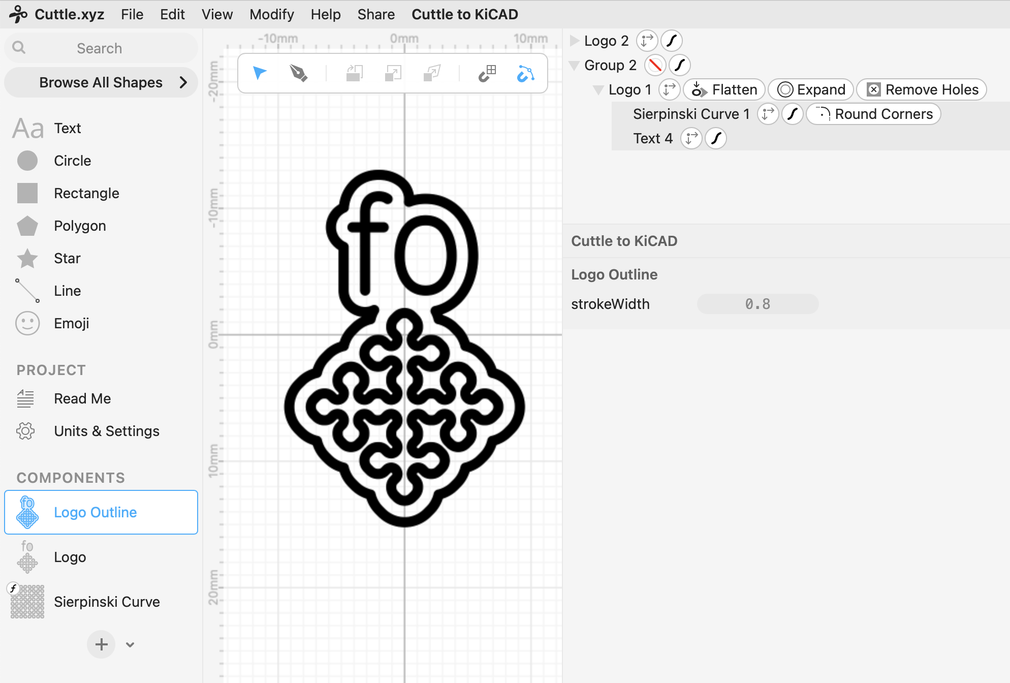 I tested that SVGs made with Cuttle import with the correct scaling in KiCAD. This will be fun for fancy board shapes, and silk screen logos and info.