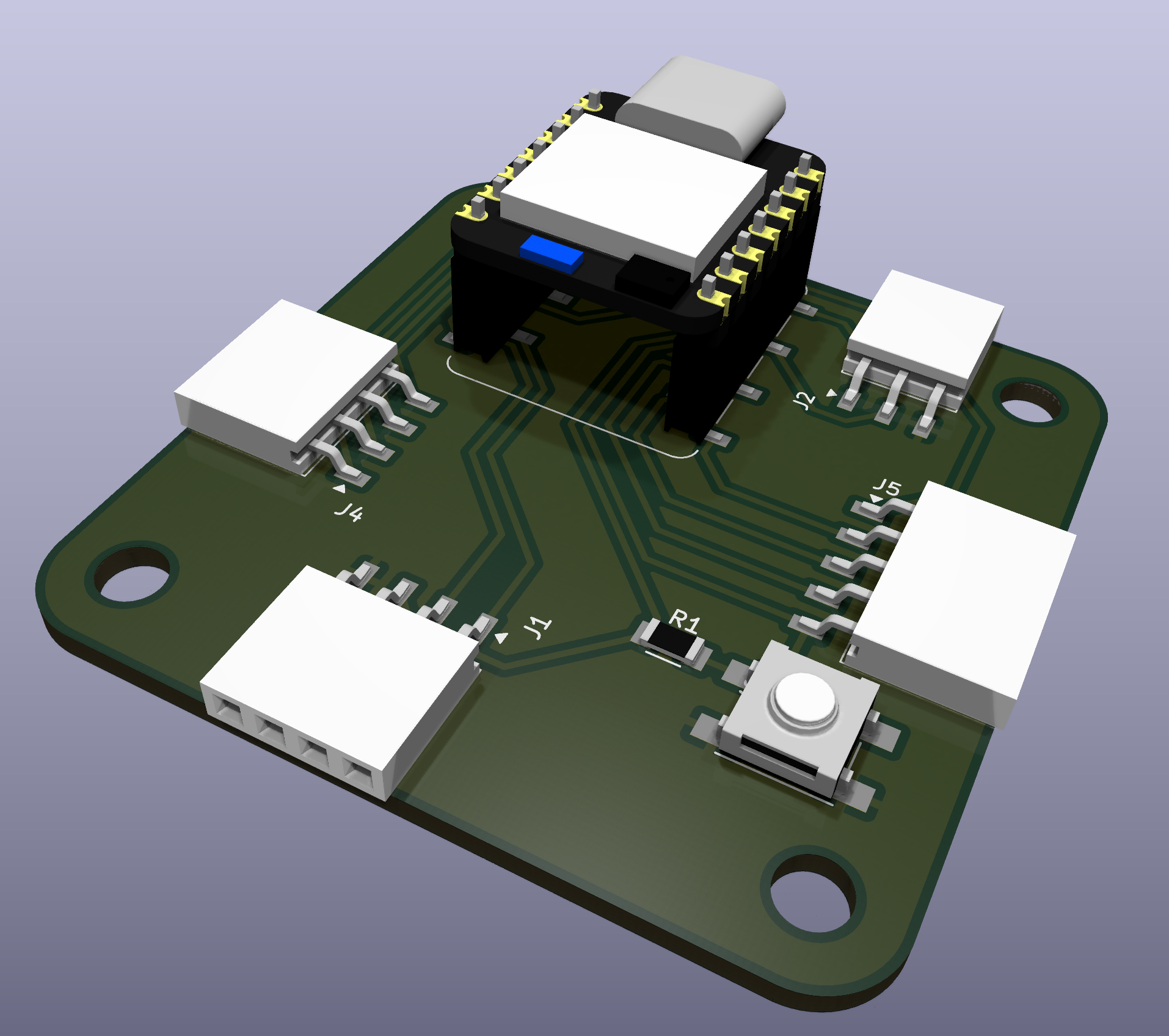 KiCAD 3D board view.
