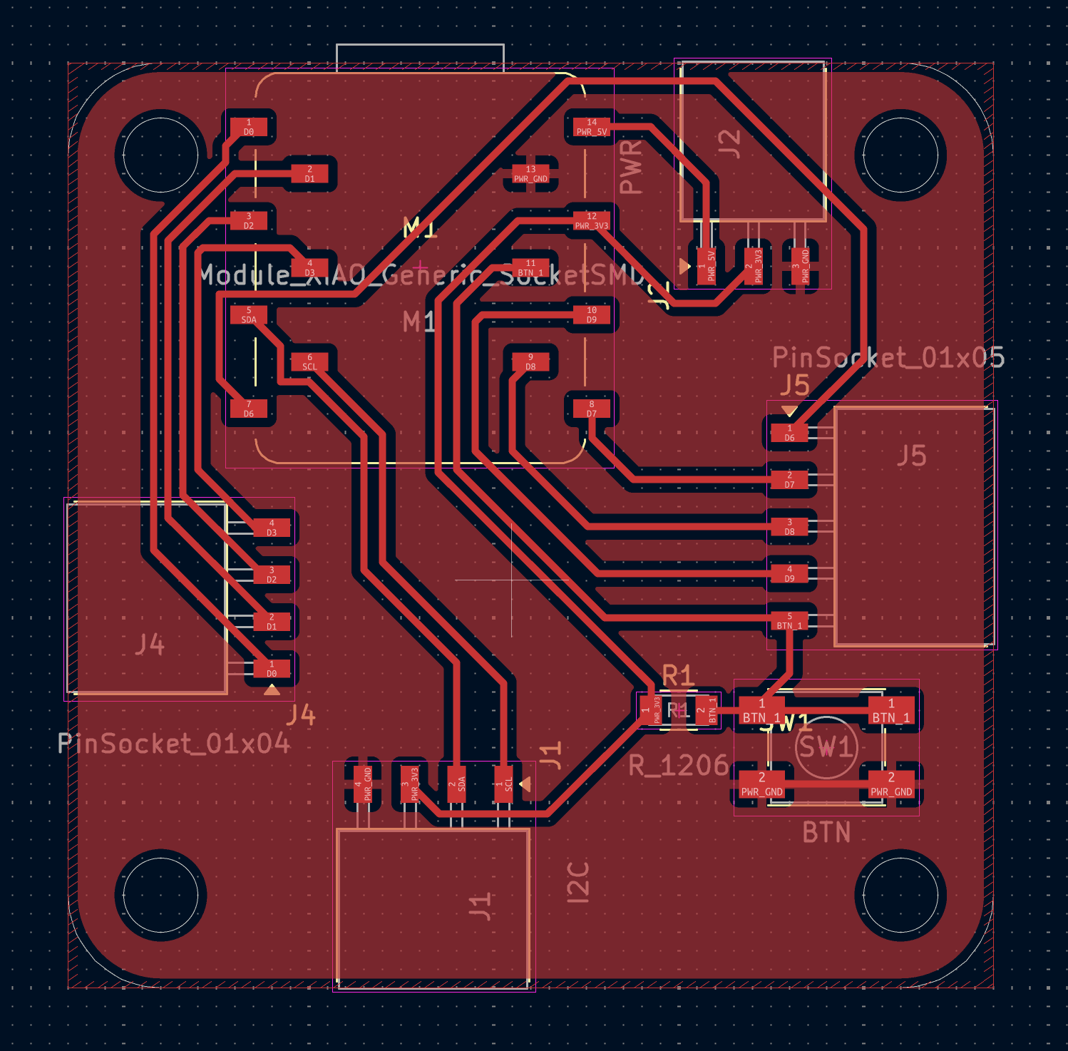 Building on Week 06's breakout board design for XIAO RP2040. Made the board square, with rounded corners, and only one button.