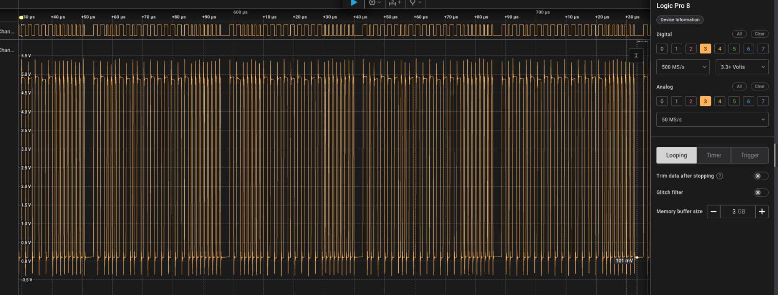 Probe UI showing 5v data signals.