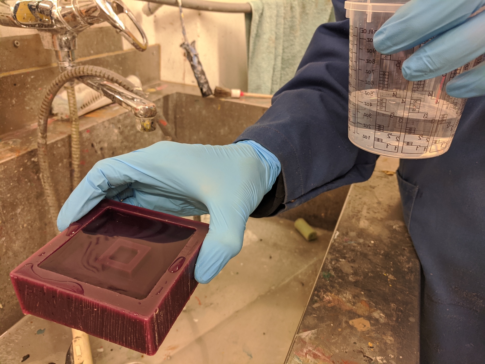 At this point it was the end of the day. I debated bringing the mold home with me on the metro, but decided to let it cure at the Fablab.