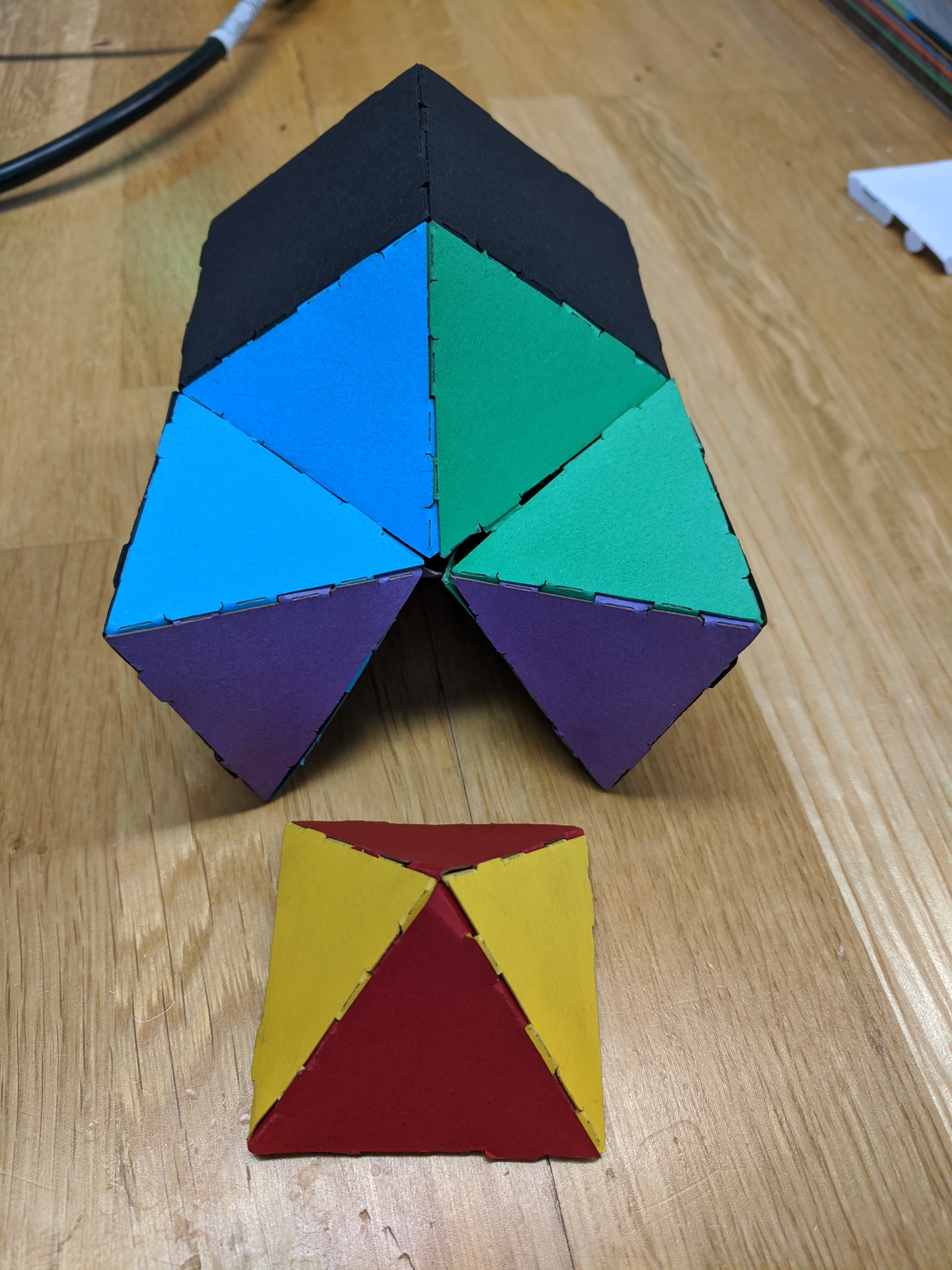 After popping out the triangles and trading them around, the participants started exploring how the parts can come together.